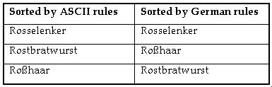 before b, whereas the ASCII order sorts an umlaut after all other letters.