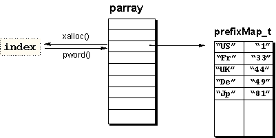 Let us now deal with the problem of adding the international country codes that were omitted from the previous class declaration. These country codes can be held as a map of strings that associates the country code with a mnemonic for the country's name, as shown in Figure 15: